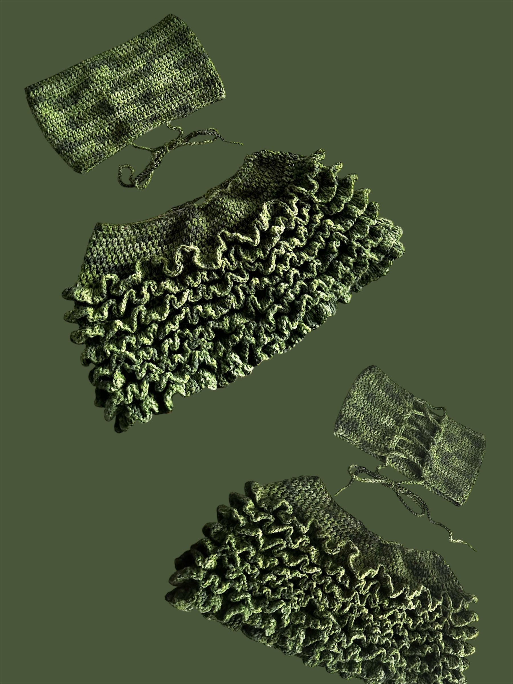 Bandeau Style Top with laced backing with a ruffled mini skirt ( skirt length and bandeau top length can be modified)